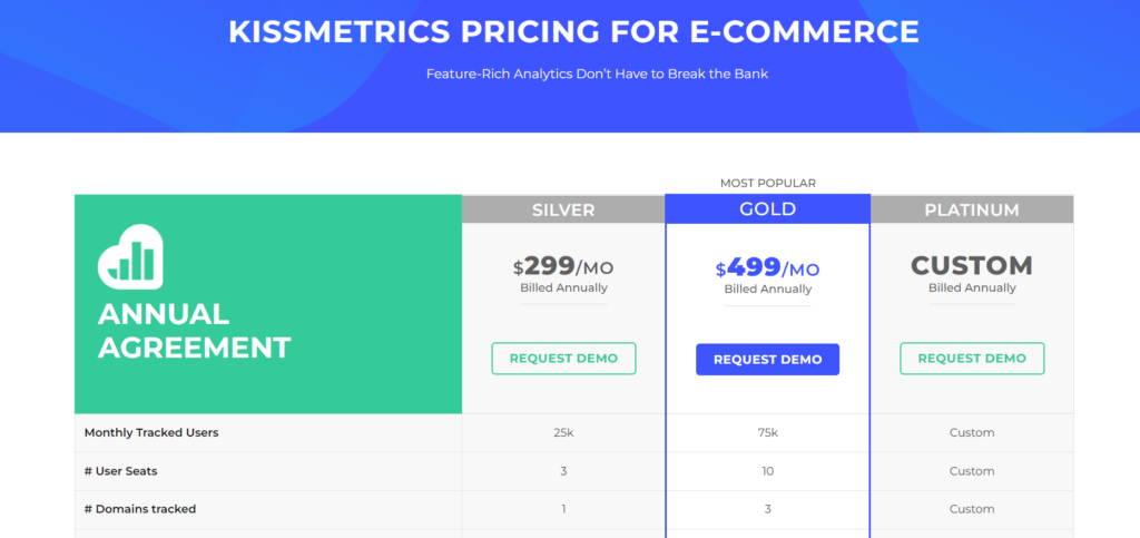 Kissmetrics understands that folks across different industries will be interested in their products; therefore, they created their prices for the Ecommerce and the SAAS industries separately.